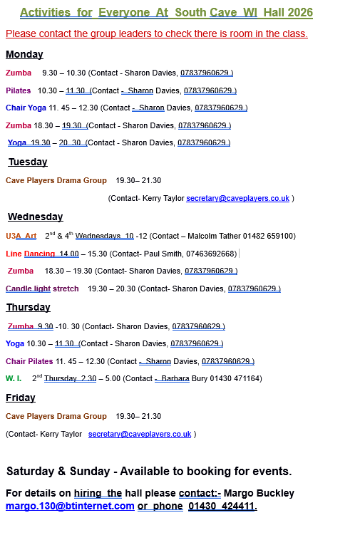If you would like to discuss any matter with the Parish Clerk please contact 01430 421044 or email clerk@southcavepc.gov.uk